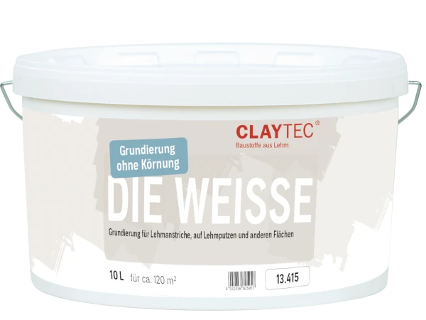 Leemverf hecht niet chemisch aan de muur maar mechanisch. Daarom is het bij Claytec Leemverf nodig om het oppervlak van de muur gelijkmatig zuigend te maken door een fijne primer zonder korrel. Op de Claytec Primer Glad hecht de Leemverf uitstekend.
